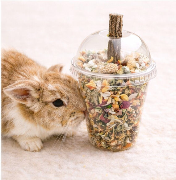 Offer the Bunnacino as a treat or enrichment activity. Allow your pets to explore, nibble, and forage through the layers. Always provide fresh water and monitor feeding to maintain a balanced diet.